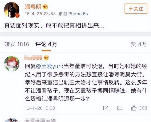 在董洁接受访谈不久之后,潘粤明深夜里在微博发了一条消息,内容简单,也只有一句话:“一定要这么现实吗……”