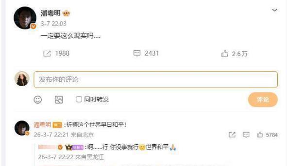 不过,潘粤明没有多说什么,只是在评论区留了句话:“祈祷这个世界早日和平”——这份沉默和当年被黑得一塌糊涂时的态度,真是如出一辙。